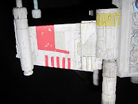 Detailing work. Here is a picture of the back of the studio Hero model. If you look at the trench of the back of the wings you will see a thin rod going the length of the wing. The kit doesn't have that bit, so I cut some small brass rod and added it myself.
